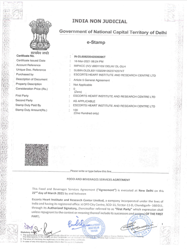 Fortis-Escorts -Okhla Agreement-2021-2023